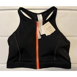 Fabletics Swim Top Womens Medium Black Orange Zip Front Racerback Sports Bra NWT