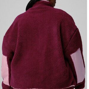 Fabletics Tahoe Teddy Jacket Women's Merlot/Soft Pink Snap Button Fleece 2X