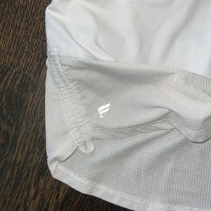 White fabletics tank with a razorback. Built in bra with padding. Has the ability to sinch on the sides. Good Condition.