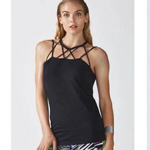 Pre loved strappy tank with light wear reflected in discounted price Length- 26” Bust across- 17” Fabric- cotton viscose