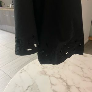 The material is stretchy and comfortable. Can be dressed up or dressed down. It is super flattering with the way it falls. Size xsmall from fabletics!