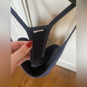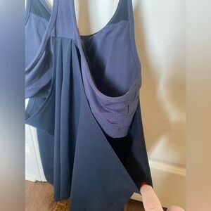 Features built in bra and drooped back design.