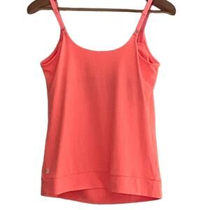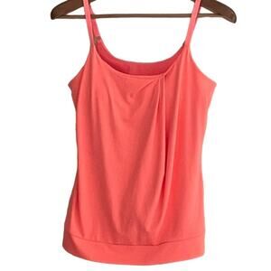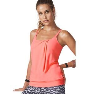Blouson style performance tank. Its flowy body and fitted bottom is a contemporary update on your basic studio staple. Adjustable straps and a built-in bra keep you locked in.