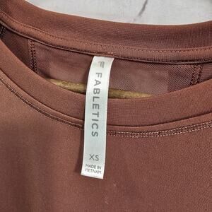 Fabletics Tank Top Womens XS Copper Rust Slit Open Back Longline Mesh High Neck