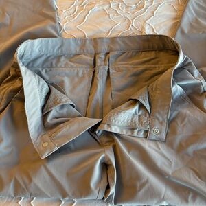 From Fabletic's. From the Only Pant collection, in classic fit style. Casual dress pants with 2 front pouch pockets, 1 front right zip pocket, 2 back zip pockets, snap button, belt loops & 4 way stretch. Minimal wear. Color is silver/grey. Tag removed, size is 34 X 30. Paid $105.