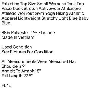 Fabletics Top Size Small Womens Tank Top Racerback Stretch Activewear Athleisure Athletic Workout Gym Yoga Hiking Athletic Apparel Lightweight Stretchy Light Blue Baby Blue