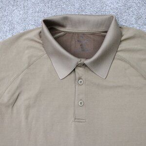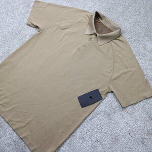 Fabletics Training Day Polo Shirt NWT Men Large Brown 4 Way Stretch S/S Pullove