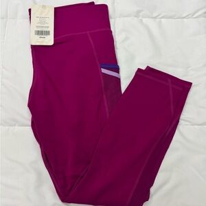 Magenta mid-rise leggings with side pockets. Ideal for active wear.