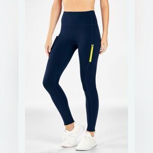 Fabletics Trinity Motion 365 HW Utility Legging in Navy and Yellow - Size XS