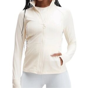Fabletics Trinity Performance Full Zip Fitted Jacket Egret/Ivory Activewear