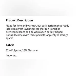 Fabletics Trinity Performance Jacket. Gently used as scrub jacket for work, no holes or tears and I love it, just needed bigger size which brings me to my next point….