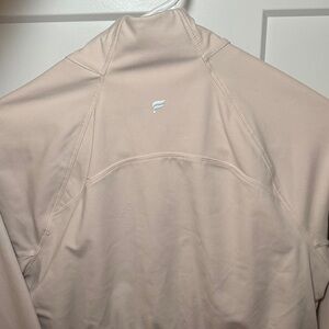 - Stylish pink athletic jacket with logo detail. Perfect for workouts or casual wear.