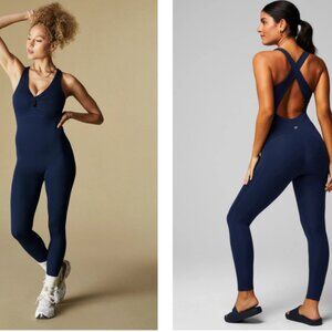 Fabletics Twist Front Oasis Jumpsuit 7/8 in Deep Navy Blue $99