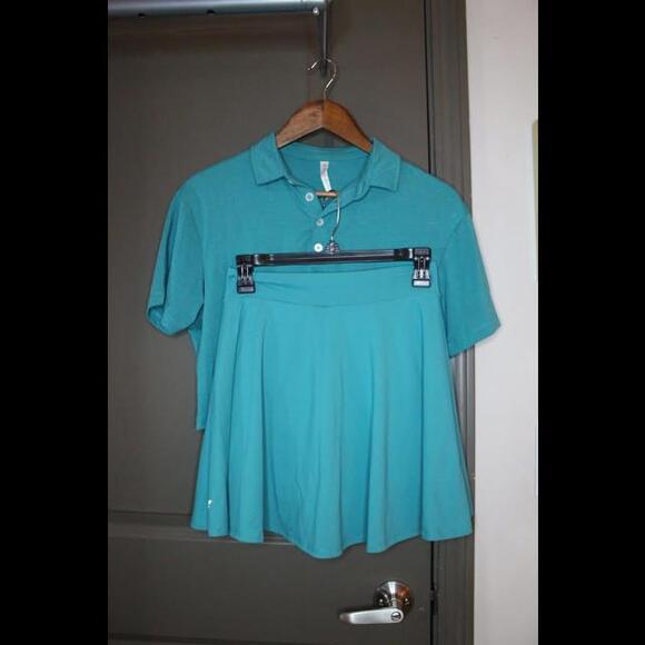The cropped polo top features a classic button-up design, while the flowy athletic skort provides ease of movement and a flattering fit.