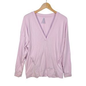 Fabletics V Neck Sweatshirt Pullover Top w Pockets Baby Pink Athleisure size M
