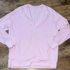 Fabletics V Neck Sweatshirt Women’s S PINK Yoga Gym Oversized Baggy Fit pockets