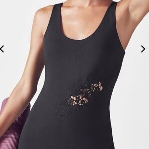 Add some frill to your drills in our lace appliqué performance tank, crafted with sweat-wicking technology and a supportive built-in bra.