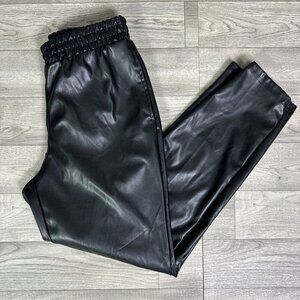 Fabletics Vegan Leather Pull On High Rise Jogger Pants Black sz XS Tall