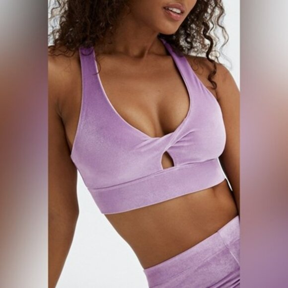 Fabletics Velour Velvet Sports Bra Twist Front Oasis s 4 Running Gym Yoga NWT