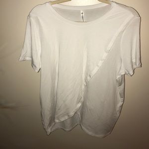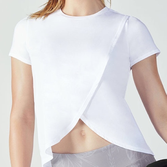 Never worn, but the tags are lost. Description from fabletics: "They key to a cool girl uniform is right in front of you. Say hello to your new wear-everywhere tee with a stylish overlap design, crafted from our cool touch fabric."