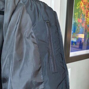 Mock neck with button closures, zip front, zip venting/adjustable sizing on the sides