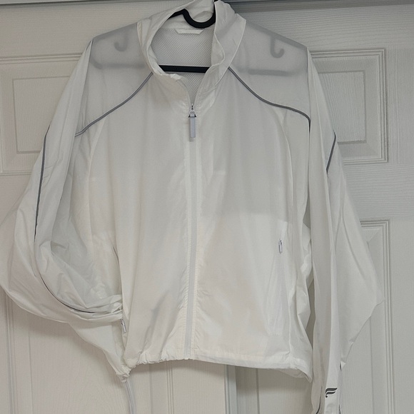 Stylish white jacket from Fabletics. Lightweight and breathable. Perfect for layering.