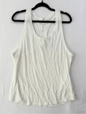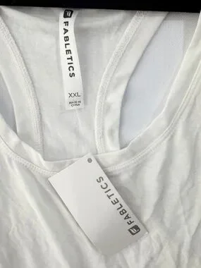 Lightweight white racerback tank from Fabletics. Breathable fabric with a relaxed, sporty cut. Easy to layer or wear for workouts. Minimalist design for everyday wear.