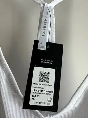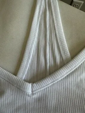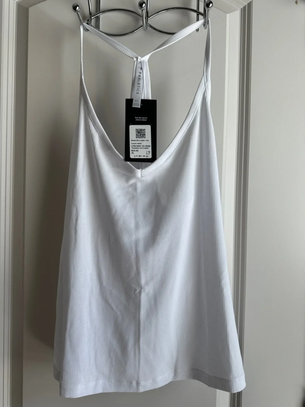 Fabletics White Ribbed V-Neck Tank with Racerback