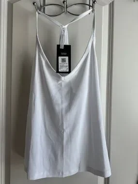 Lightweight ribbed tank with a V-neck. Thin racerback straps for added style. Soft, breathable knit for everyday wear. Easy to layer or wear alone. VERY lightweight.