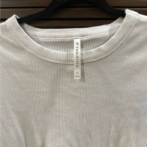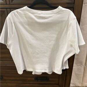 Stylish ribbed crop top by Fabletics. Soft fabric with a classic white hue. Ideal for casual wear.