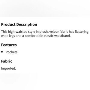 Fabletics Wide Leg Go To Velour Velvet Pants New Pull On Elastic High Waist