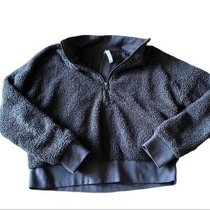 Fabletics Wm’s Sz XS Dark Gray 1/2 Zip Pull Over Cropped Sherpa Jacket