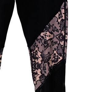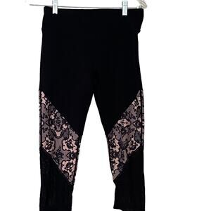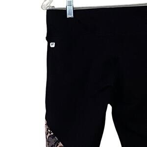 Fabletics Woman's Size Medium Black Pink Mesh Hems Cropped Athleisure Leggings