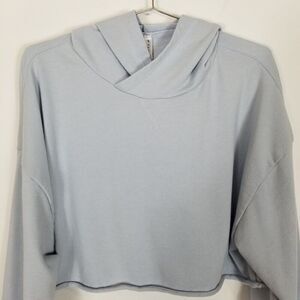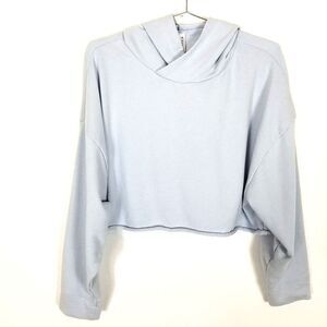 Fabletics Women Cropped Hooded Sweatshirt Sz XL Light Blue Pullover Athletic