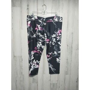 Fabletics Women Size XXL Black Floral Winn Mid Rise Capri Leggings