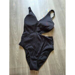 Fabletics Womens Black Ribbed Cutout Swimsuit Size L