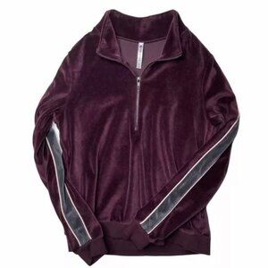 Fabletics Womens Britt Pullover Jacket Purple Gray Small Velour Velvet Plush