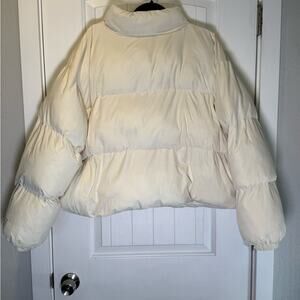 Fabletics Women's Cropped Cream Puffer Jacket Size 1X