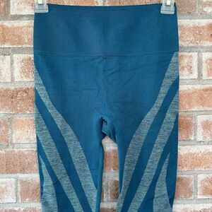 Women's size XS Fabletics high waisted seamless leggings. Deep teal blue color with lighter accents. Excellent condition!