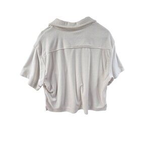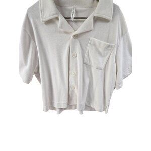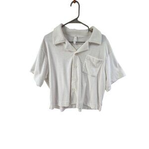 Fabletics Women's Island Terry Boxy Button Up Short Sleeve Collard White Size M