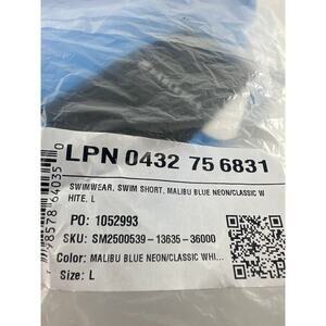 Fabletics Women's Malibu Blue Neon Classic White Swim Shorts Size L