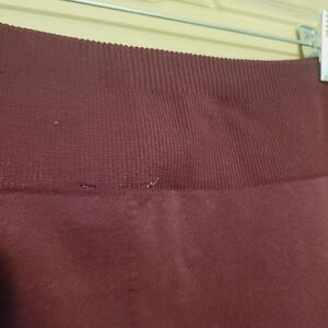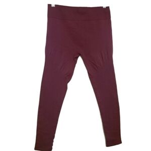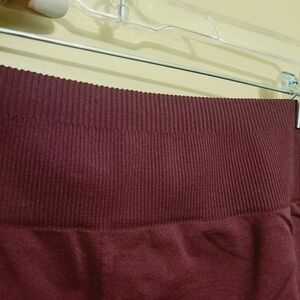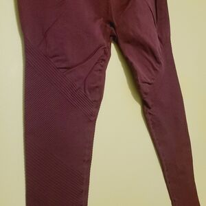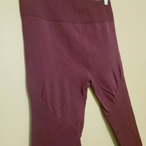 Women's maroon, athletic, high waist skinny leggings by Fabletics, size XS. Ribbed design along waist and legs. Size/fabric tags are missing; leggings are stretchy. Please compare the measurements below with the included Fabletics sizing chart (pic 8).