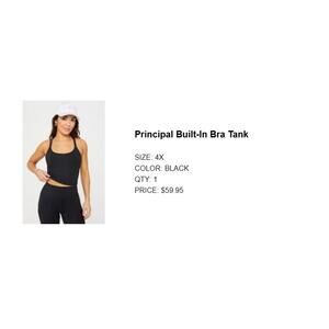 Style: Women's Plus Size; Principal Built-In Bra Tank Top; Sports Bra; Inside Tag Cut; See photo for sizing information