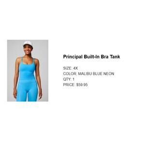 Fabletics Women's Plus Size Malibu Blue Neon Principal Built-In Bra Tank Top Size 4X