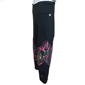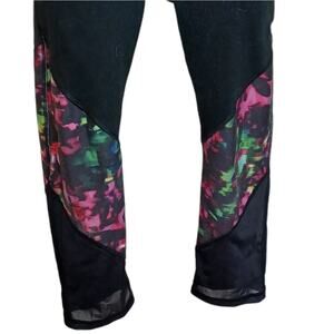 Fabletics Womens PowerHold Capri Pants Small Black Multicolor Mesh Activewear
