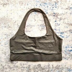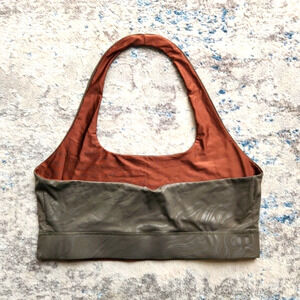 Fabletics Harlow Halter Reversible Sports Bra, size 3X, Ranger Green Small Marbleize/Shine Chestnut colorway, in EUC.