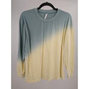 Fabletics Womens T-Shirt M Boyfriend Long Sleeve Tee Dip Dye Seafoam Buttermilk