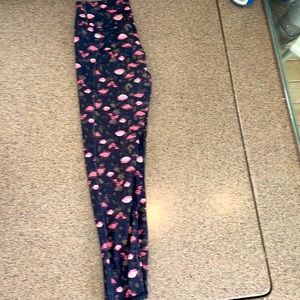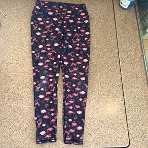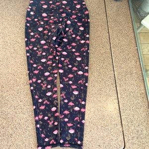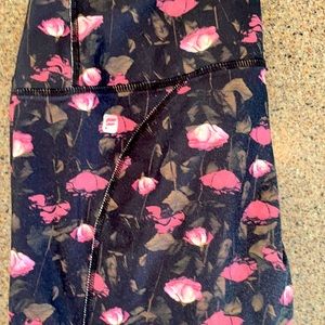 Black Capri work out leggings with pink and green roses.