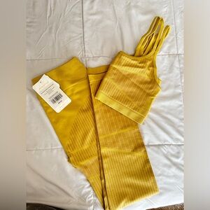 Mustard workout set. Size large/10. Fabletics High-Waisted Seamless legging.