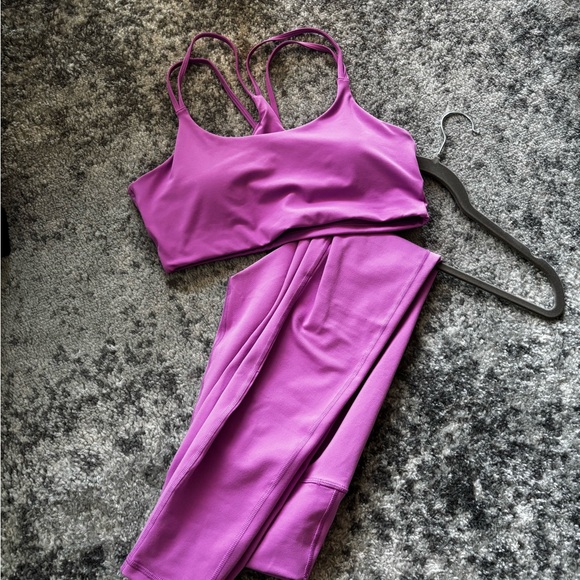 Bubble gum pink workout set, comes with sports bra and leggings. The sports bra has removable cup pads and the leggy is soft and flattering. In perfect condition never worn. I like to stick with my dark colors haha